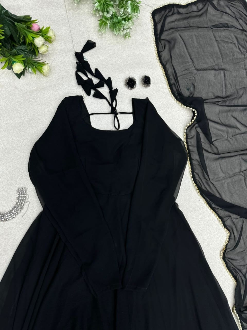 Elegant Georgette Gown with Dupatta – Real Shoot Design