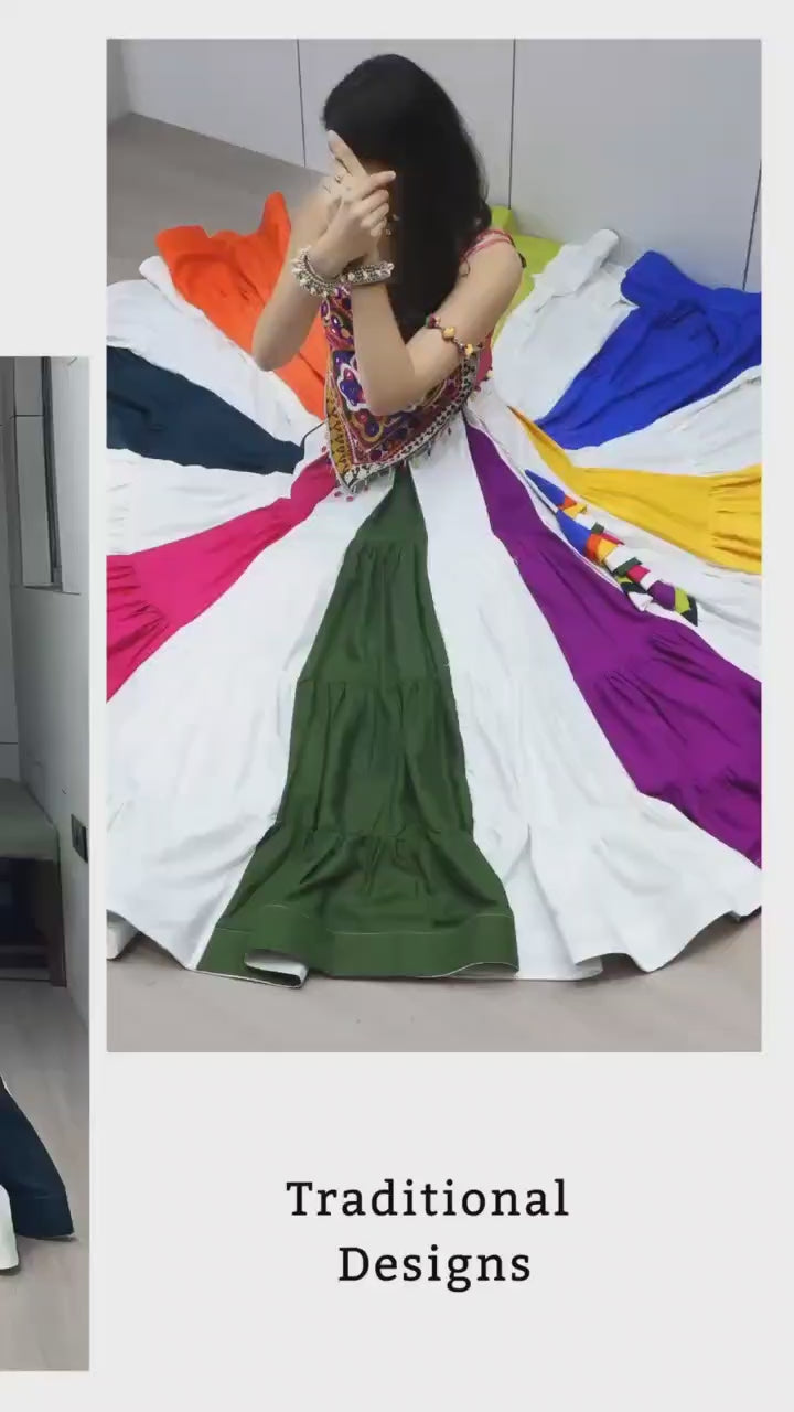 A vibrant and colorful festive wear set – perfect for dandiya nights, Navratri celebrations, and traditional events