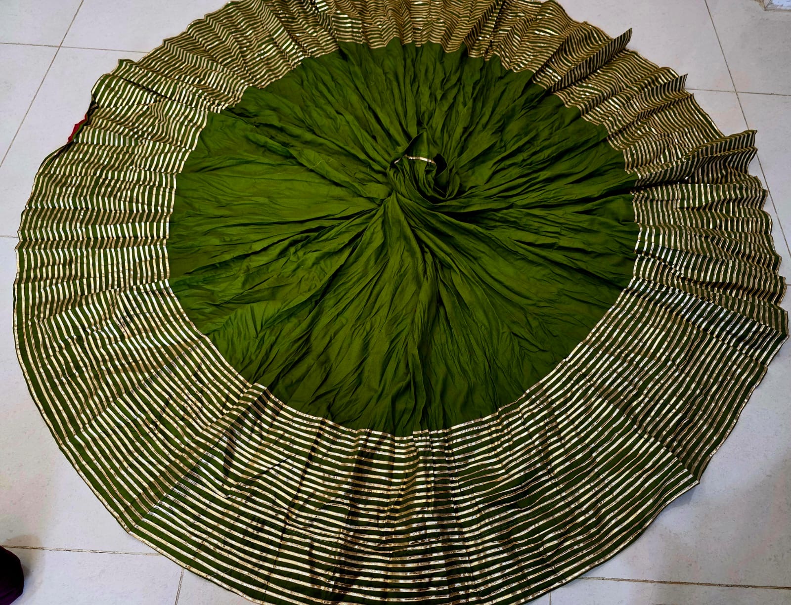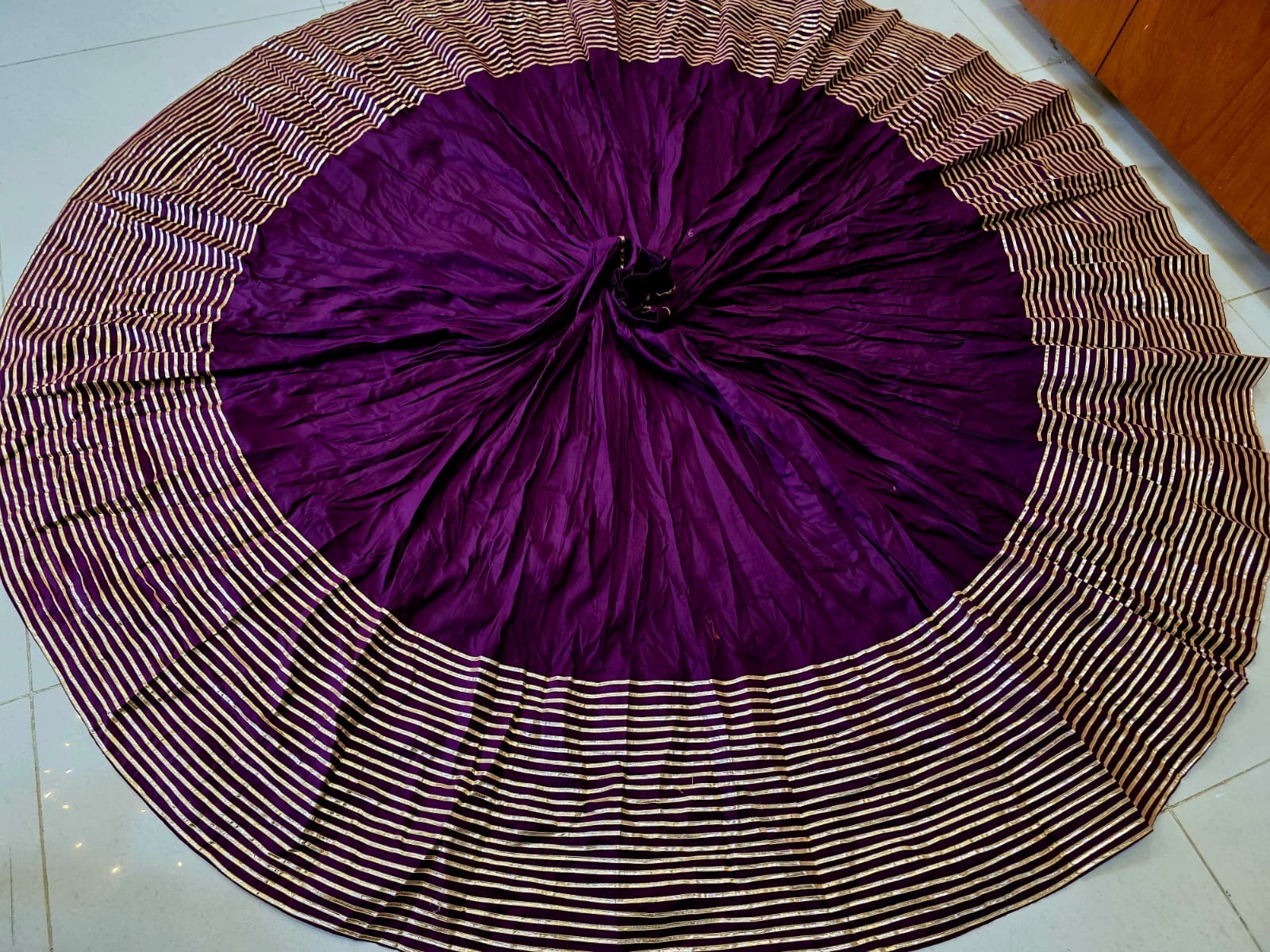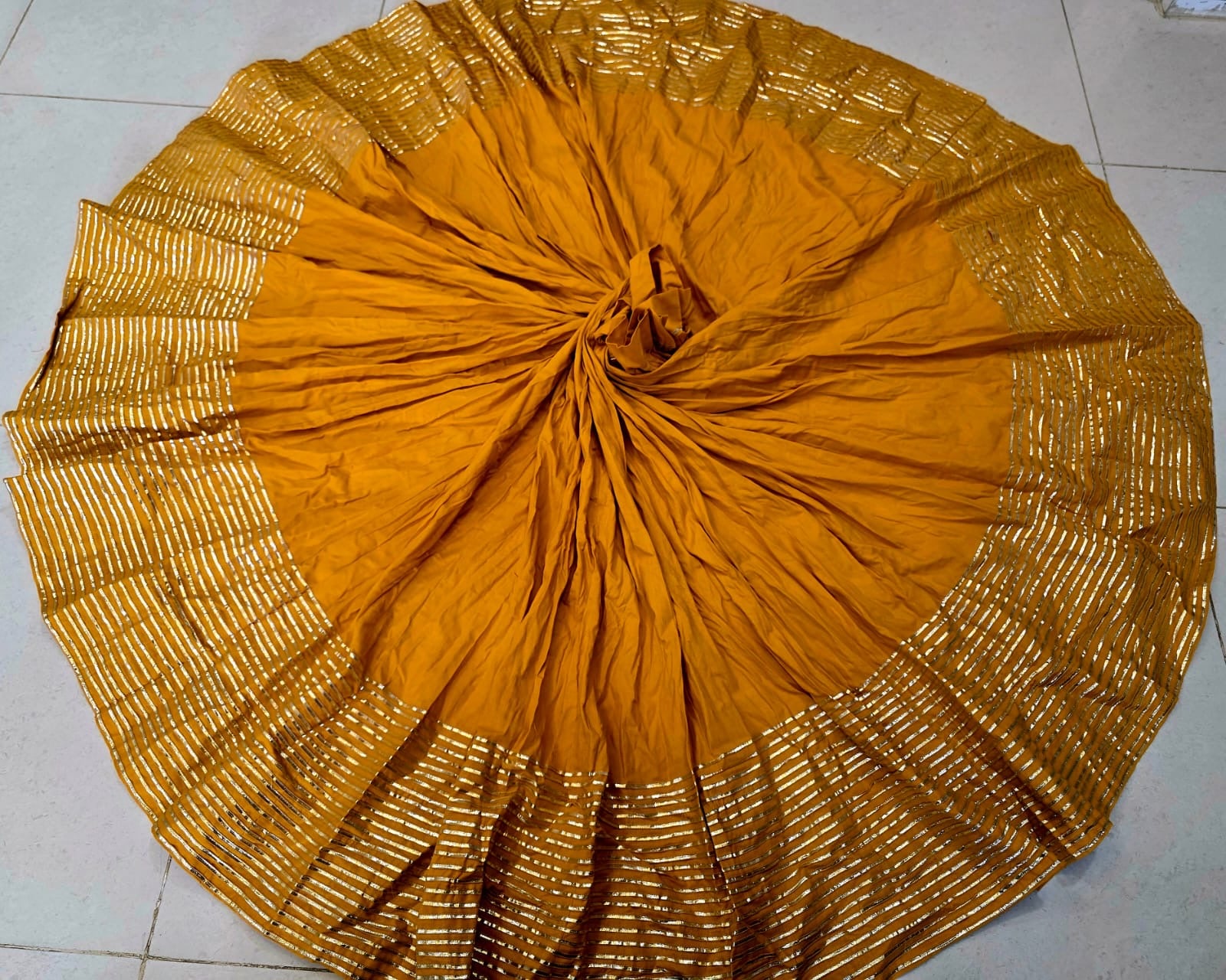 - ✨ Bring elegance to your festive look with this Full Ger Chaniya – cotton fabric, 25 golden pattis, 7m flair & a perfect 42-inch waist fit!