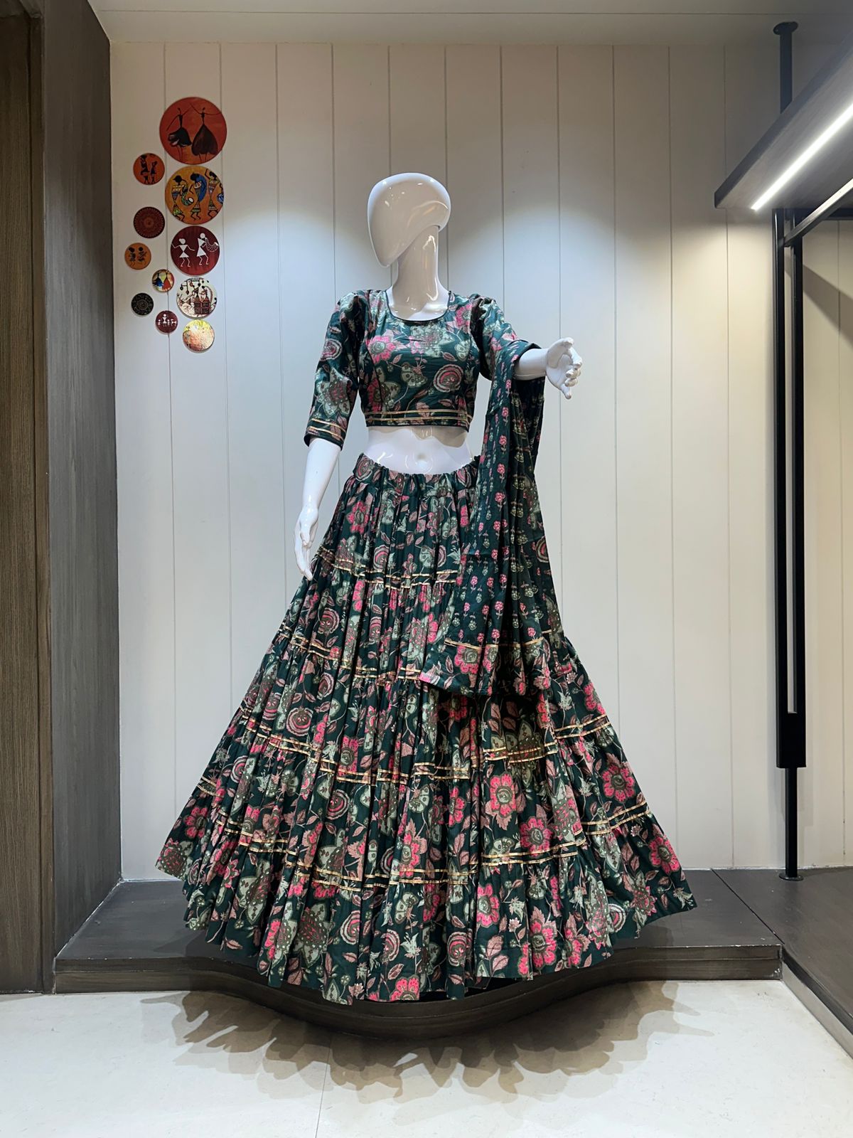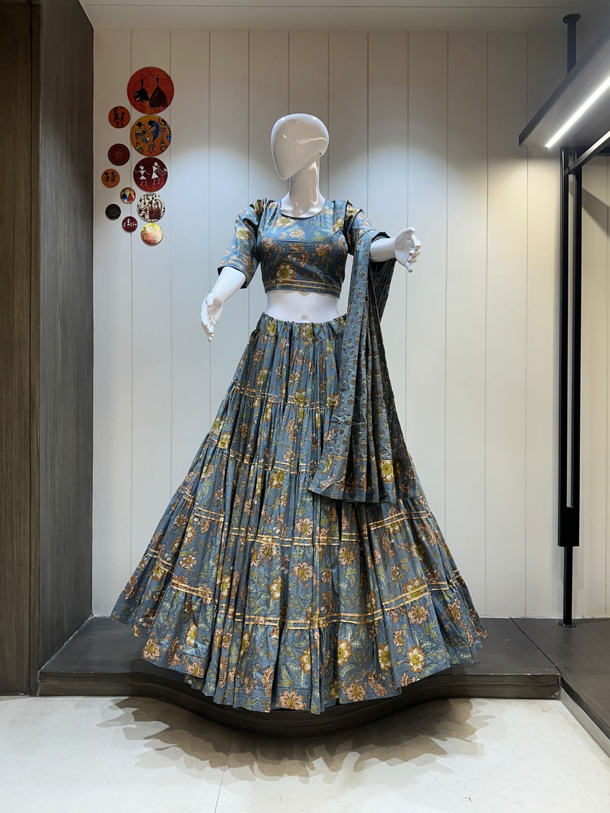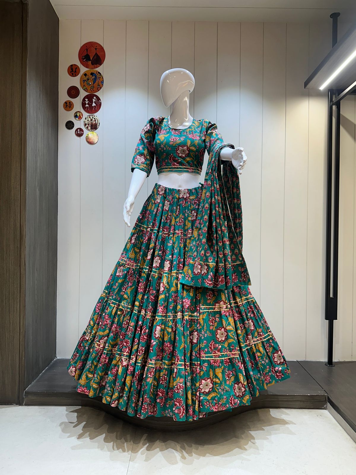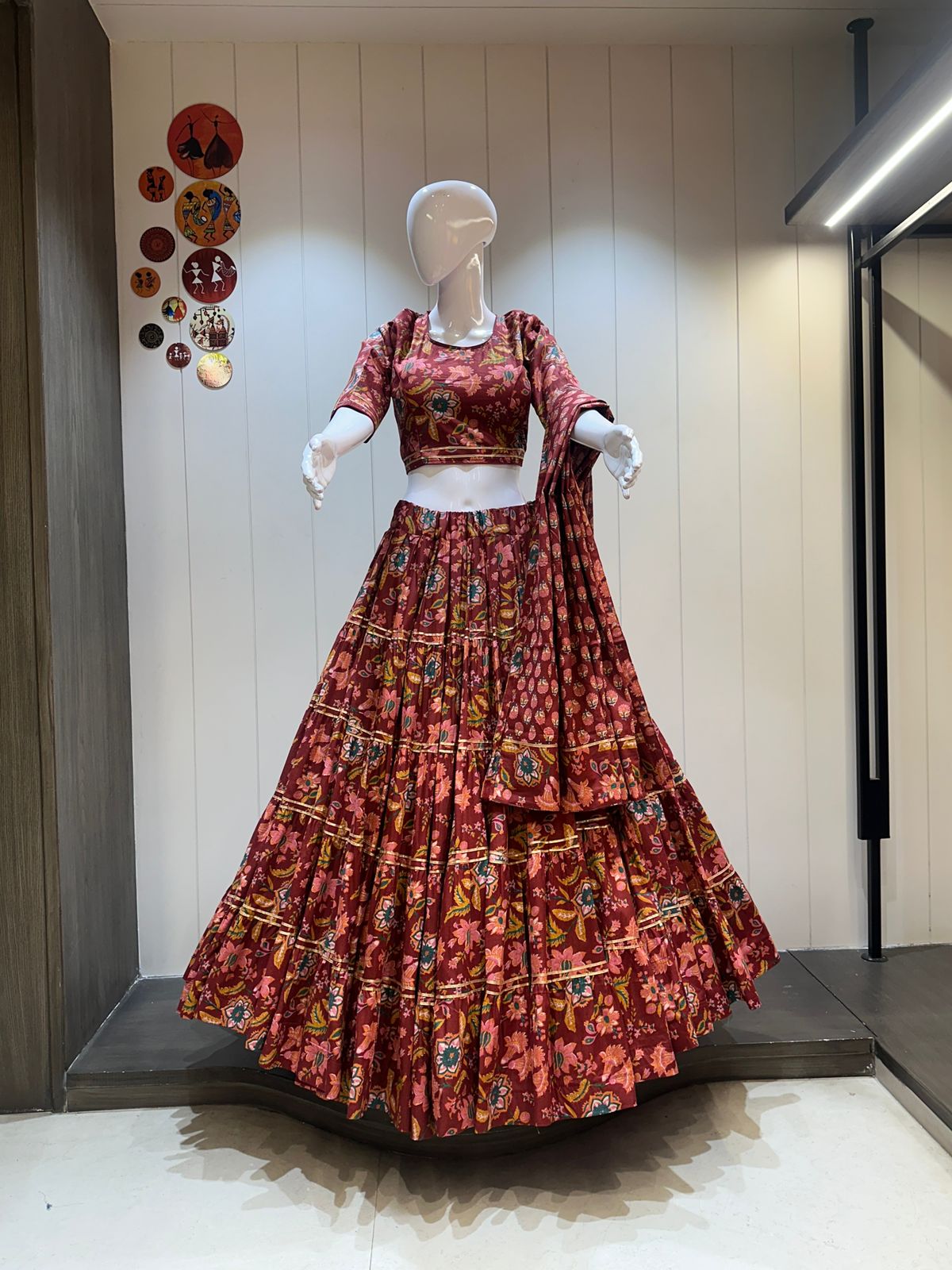 Heavy Pure Jaam Cotton Chaniya Choli with 7 Meter Flair & Hand Mirror Work | Chanderi Dupatta