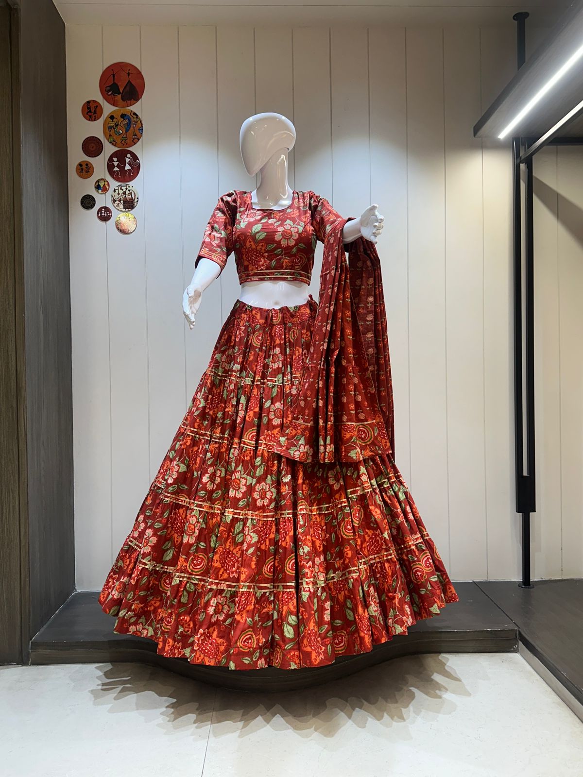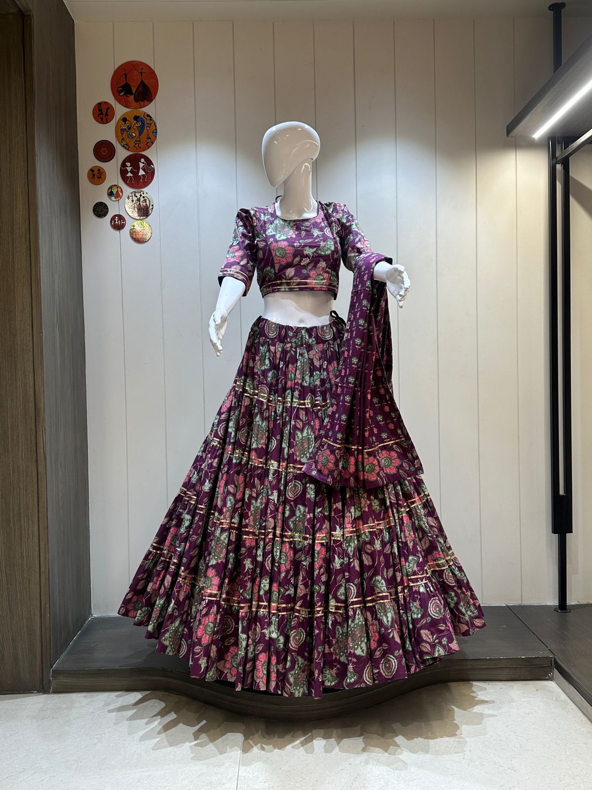 Celebrate tradition in style with this luxurious Pure Jaam Cotton Chaniya Choli, crafted with heavy-quality fabricand intricate handmade mirror work. Designed for Navratri, Garba, weddings, and festive occasions, this outfit offers both elegance and comfort.