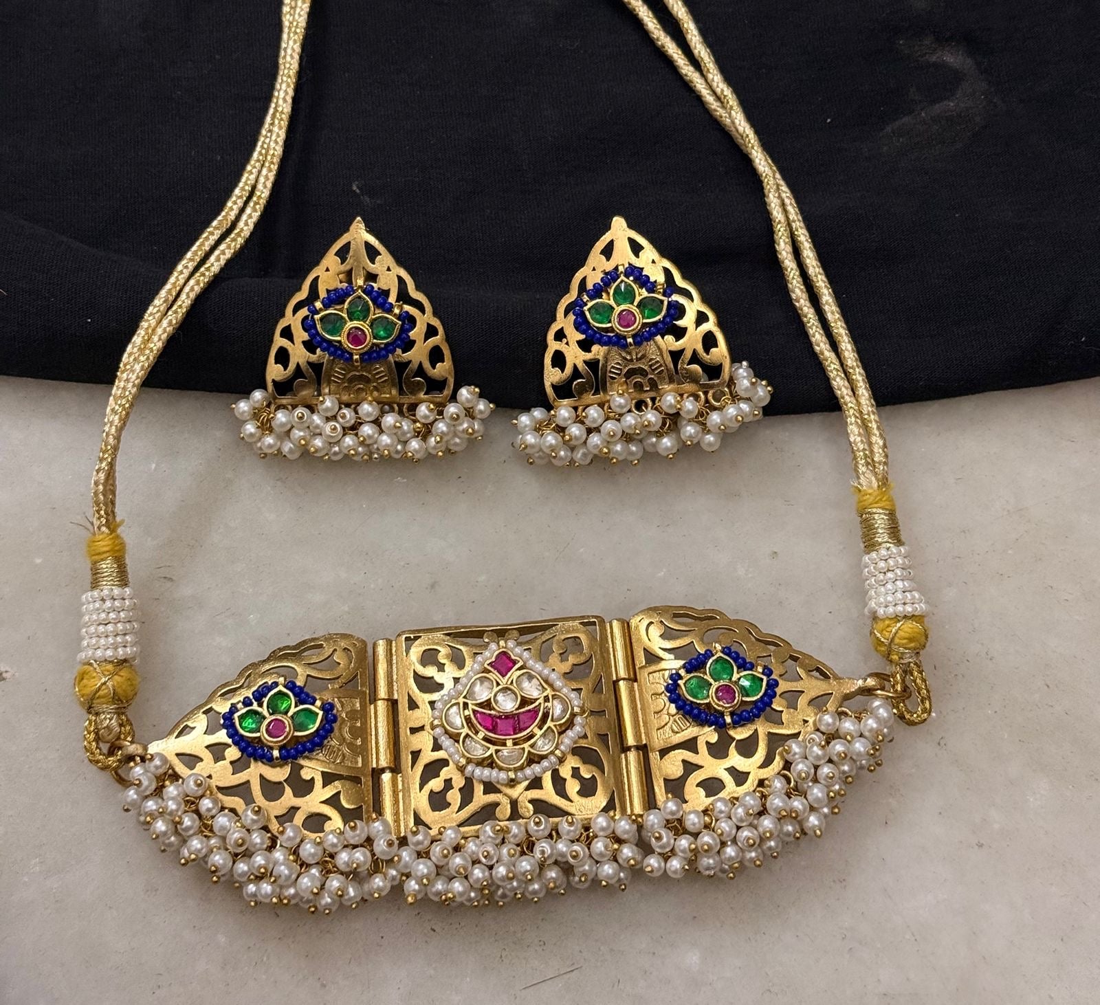 Experience true craftsmanship with our pure brass handcrafted jewellery, made using only premium and durable materials. Each piece is adorned with Monalisa stones, crystal beads, real glass, and authentic Pachi Kundan, giving it a rich, luxurious finish.