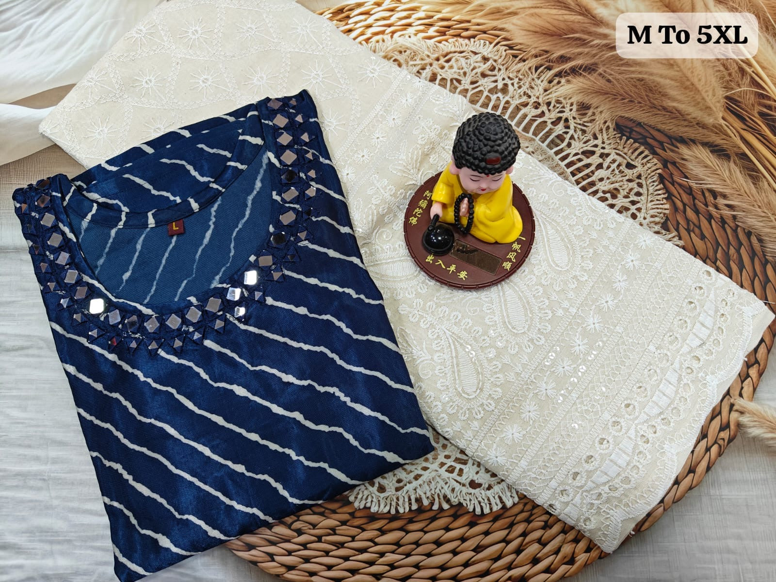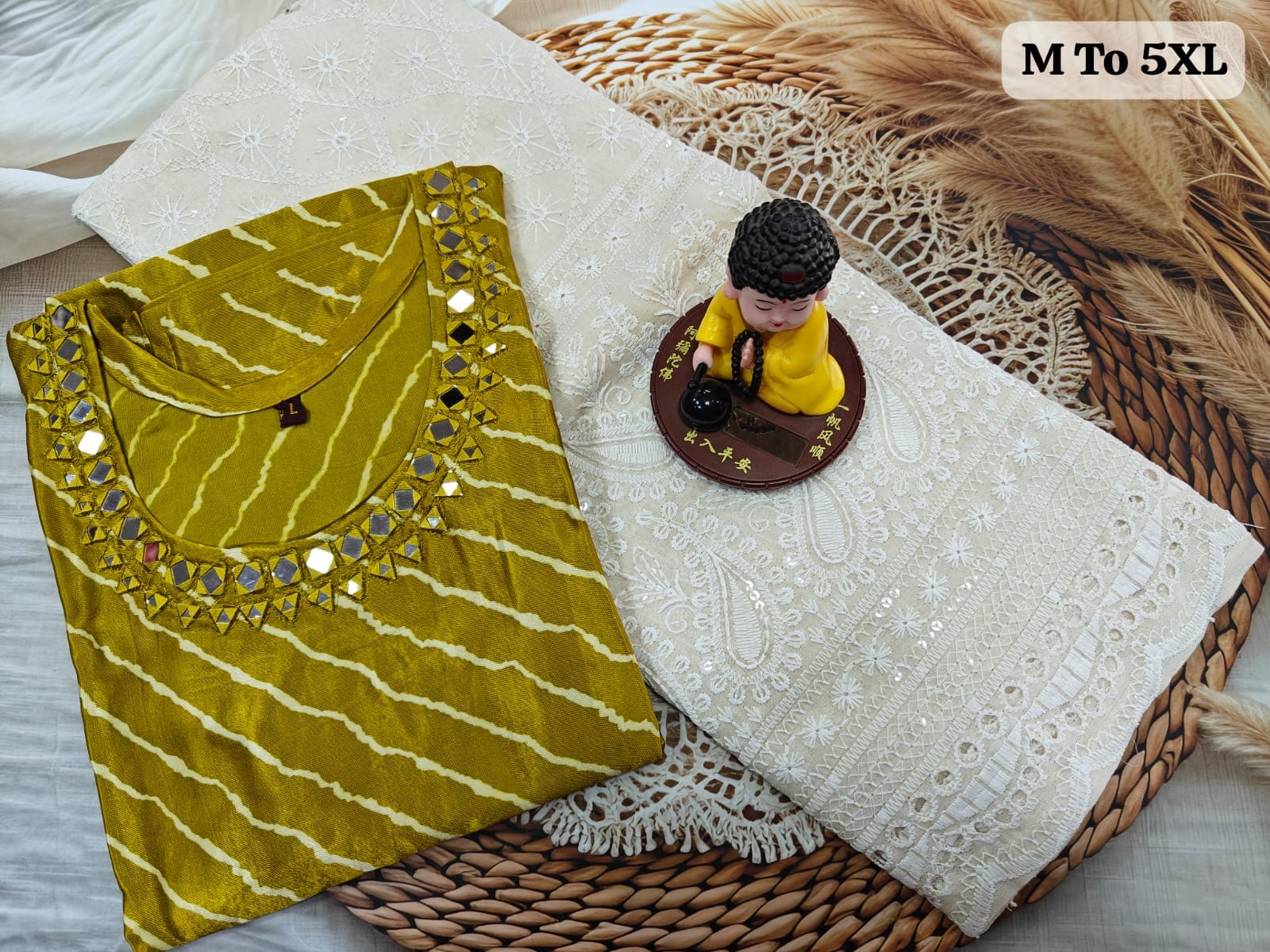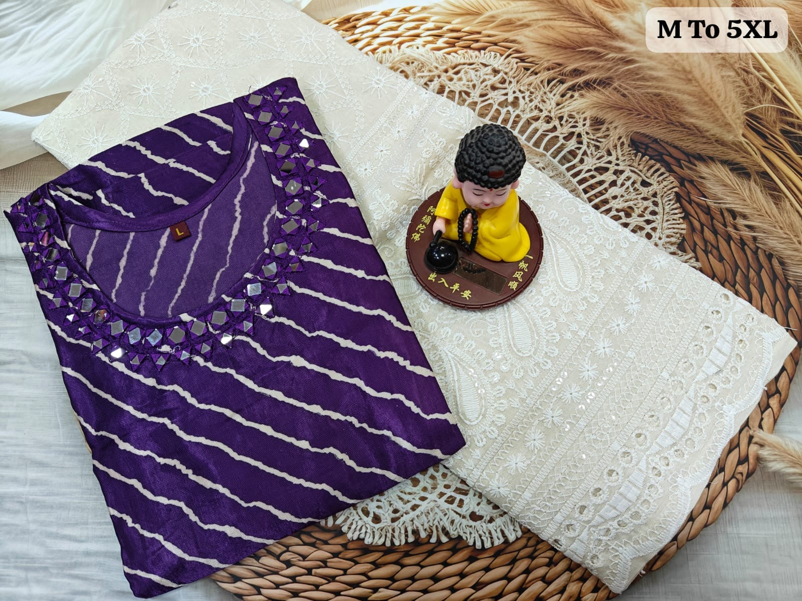 Experience the perfect blend of elegance and tradition with this Pure Gaji Mashru Silk Kurti paired with a beautifully detailed Lakhnavi Sequence Work Palazzo. The kurti features handcrafted original mirror work (55+ mirrors) — intricate, graceful, and radiant — while the palazzo adds a touch of contemporary sophistication with its delicate Chikan sequence work.