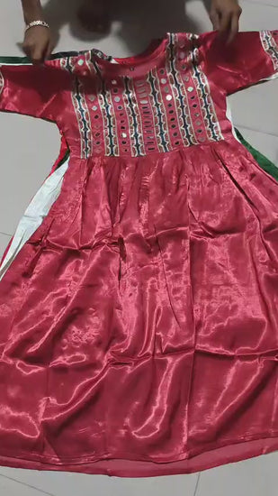 Pure Mushroo Silk Nyra Cut Kurti with Hand Mirror Work
