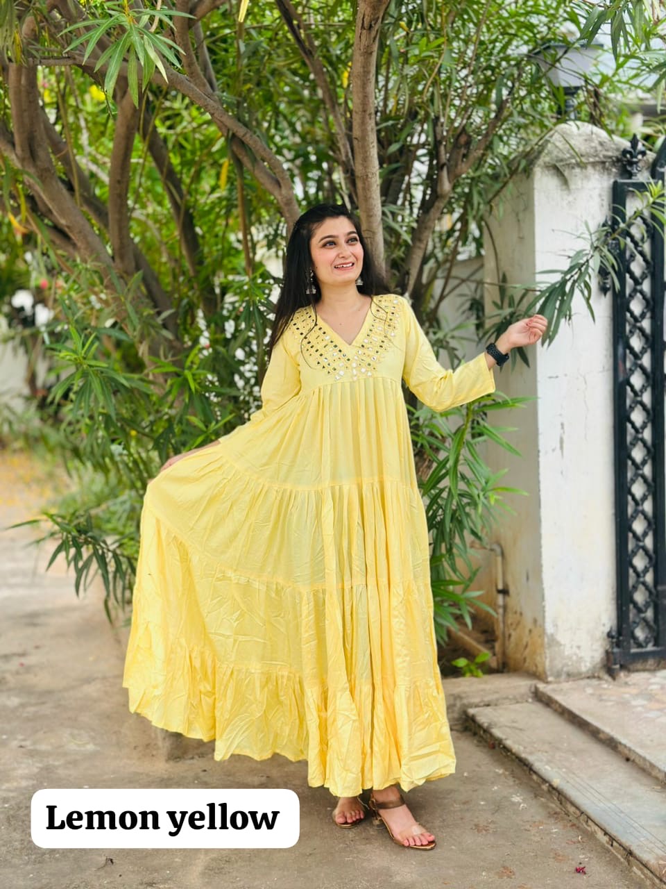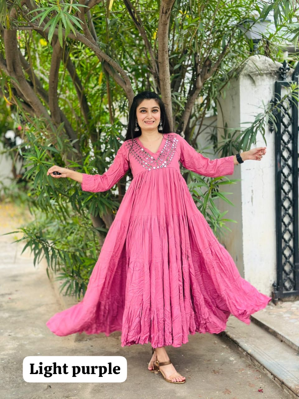 Rayon Layered One-Piece Dress with Hand Mirror Work | 20 Mtr Flair